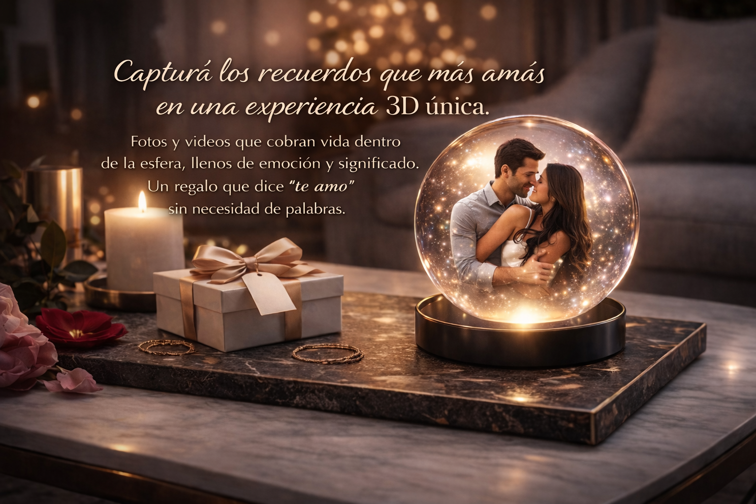 Transformá fotos y videos en una experiencia 3D única dentro de una esfera de cristal. No es un simple objeto decorativo: es una forma nueva de revivir momentos especiales con quien más querés. Ideal para sorprender en San Valentín con algo realmente distinto. -